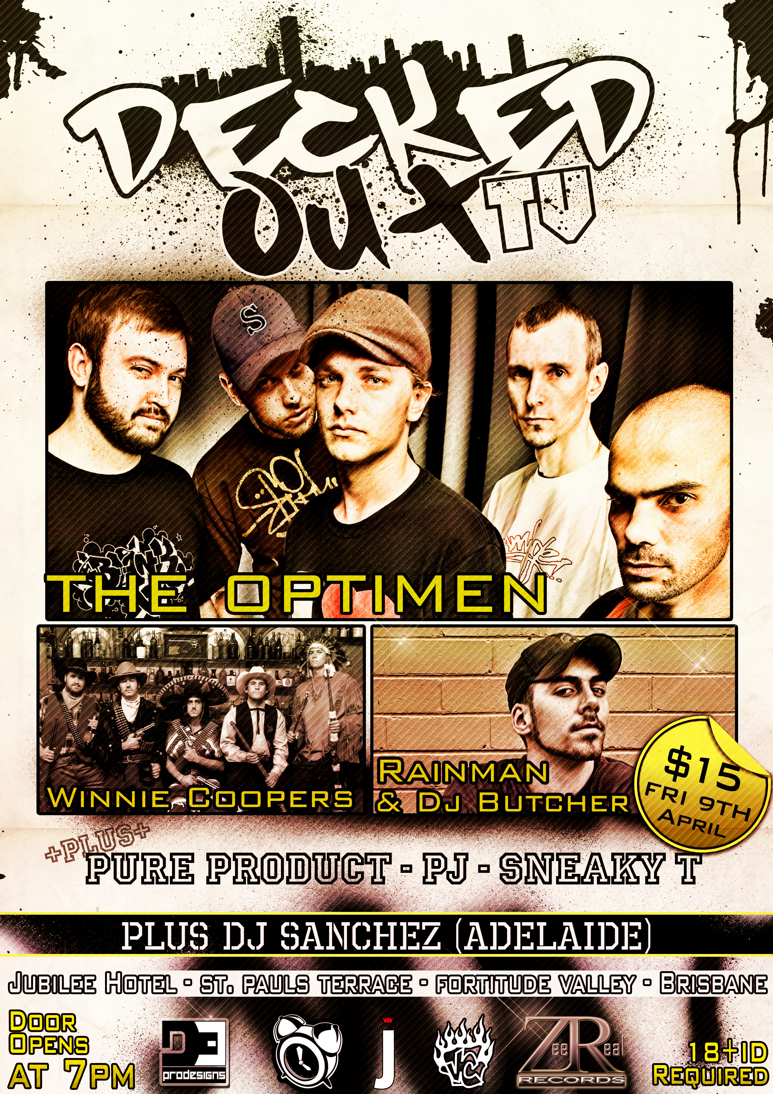 The next show penciled in for April 9, will feature some of Queensland’s finest. On the line up we have DJ Sanchez (SA), PJ, Pure Product, Sneaky T, Rainman and DJ Butcher, The Winnie Coopers and headlining, The Optimen.