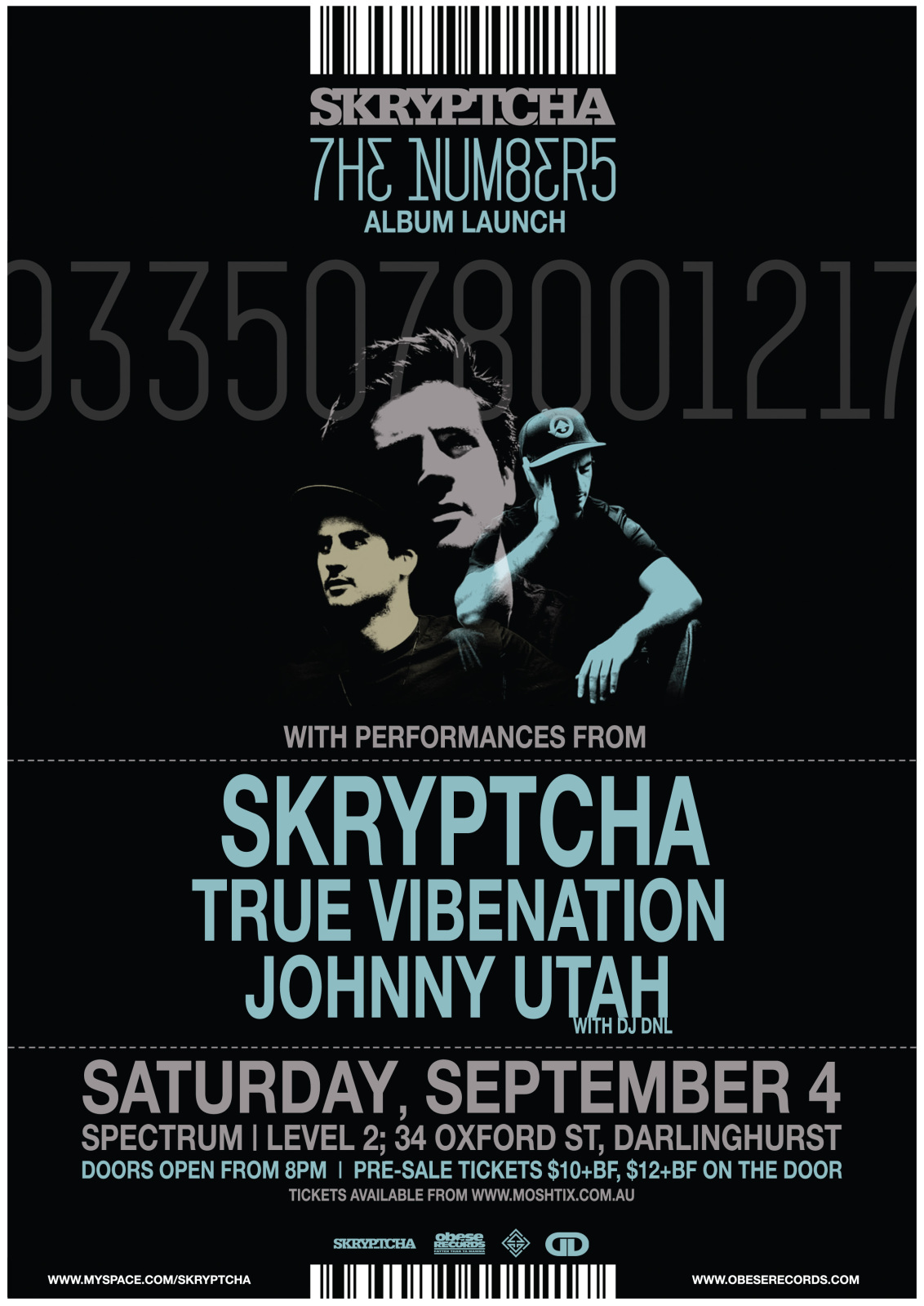 Skryptcha – The Numbers Album Launch! Supported by True Vibenation & Johnny Utah – Sept 4th