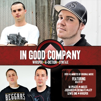 Bluntly, each an accomplished recording artist in their own right, four Melbourne musicians have joined forces to create a free downloadable album for a clambering fast paced audience that is slowly becoming apathetic to the notion of the local music industry. Each with years of industry experience behind them, In Good Company sets the benchmark for wide reaching collaboration projects for the next generation of budding young musicians. And so welcome Whisper, who alongside Obese Records signee Mantra reigned supreme in the Melbourne live circuit as the hip hop duo Equills. Whisper recently smashed his way back onto the local scene with Stand Up, the highly charged M-Phazes produced single from his forthcoming debut album; a single that clocked up an impressive two thousand youtube spins in its first week of release. Also welcome A-Diction, who after collaborating with some of the most prolific producers in the Australian hip hop industry who dropped their long awaited album Walking Alone, an album that is testament to the tried and true notion that the best things in life take a little extra time. Individually they are Boltz and Breach; Boltz, the charismatic crooner who is well known for his Soulmate Records release The Wishlist, and Breach, the punchline fuelled fury that brightens up any room like a blast of audible fresh air. Lastly welcome Syntax, one third of the celebrated QLD hip hop group Trace Elements, the group that spawned one of this country’s most notable producers; M-Phazes. With ten years of industry experience, over 30,000 downloads, and a fierce live reputation, Syntax simply adds fuel to the already stocked burning furnace that is In Good Company. His debut album The Musical available from Soulmate Records was highly noted, Syntax is one talented mother fucker. Stay tuned for his upcoming Death Stars release with Mules of Choose Mics fame.Together the four musicians have created a bond that is reminiscent of some of the most note worthy groups in hip hop history, and featuring a stellar production line up consisting of M-Phazes, Mules (Choose Mics, Hyjak & Torcha), Ciecmate, J Squared, Lewis One, ATP (Beatkamp Muzik) and Whisper, In Good Company will do more than wet the whistles of the eager hip hop loving market, it will forge itself as the standard for all collaborative projects for years to come.