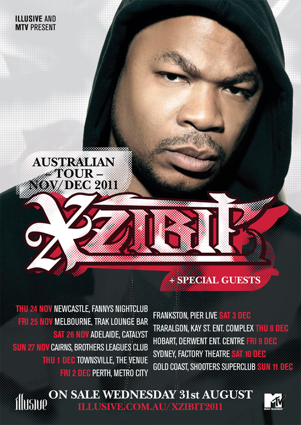 In news sure to thrill hip hop fans, Illusive are pleased to announce the return of hip hop heavyweight Xzibit to our shores in November. Xzibit marks his return to Australia after almost five years with a whirlwind tour that sees him cover 11 venues in a just over a fortnight. Alongside capital cities, X will grace Newcastle, Cairns, Townsville, Traralgon and Hobart for the first time ever.