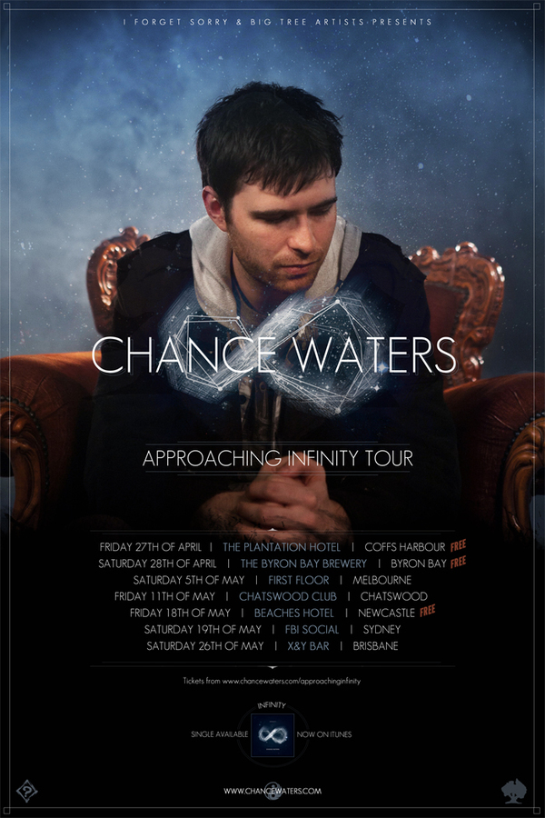 Following the release of the title track from his soon to be released sophomore album, Infinity, Sydney hip-hop artist Chance Waters (formerly Phatchance) announces that he will hit the road for a series of East Coast shows this April and May. Infinity is produced by Adelaide artist-to-watch One Above, who recently produced The Hilltop Hoods’ #1 Single ‘I Love It ft. Sia’ as well as numerous songs from Chance’s debut LP, Inkstains.