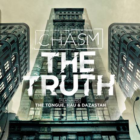 From the get-go the track detonates out of a vocal crescendo into its punchy, progressive party feel. Chasm with his exceptional ear for eclectic sample combinations fuses latin piano loops with brass accents and futuristic synth solos. Bringing a new shine to the art of braggadocio, the three emcees effortlessly glide through verses, each repping his distinctive style with assurance. The Tongue, Hau, and Dazastah all wrote and recorded their verses for The Truth in one day.