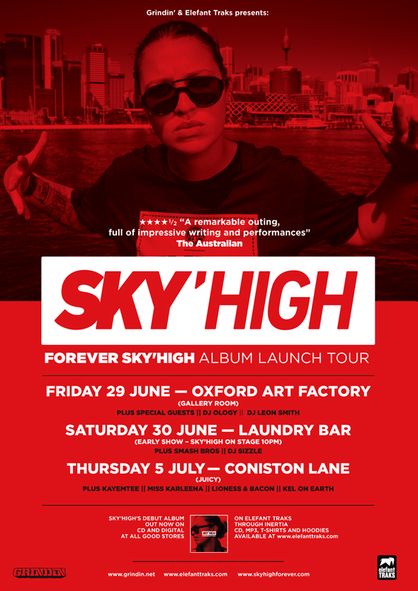 Others will hear the raw aggression and recognise the ideas, hooks and melodies are undeniable proof of one of the most exciting voices to emerge in local hip hop yet. Sky’High diversifies and illuminates the possibilities of what’s going on here, giving volume to an Australian voice the mainstream generally shut down. The creative fearlessness of Sky’High’s debut not only hits the mark but crashes through it. Whether it’s the grime of Reign, or the hip hop of Don Dada or Forever Gone, she remorselessly smashes it outta the park. But it’s when Sky reveals her vulnerability in the brutal yet achingly beautiful Nuclear Love that the listener stops dead in their tracks.