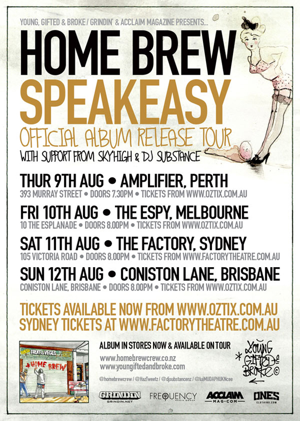Off the back of launching their self-titled double album (the first Hip Hop album to debut at #1 in New Zealand since 2003) by throwing a 48-hour party in an old brothel, having their controversial pop-up store closed down early, then touring the carnage around NZ, Home Brew are bringing the party to Australia.