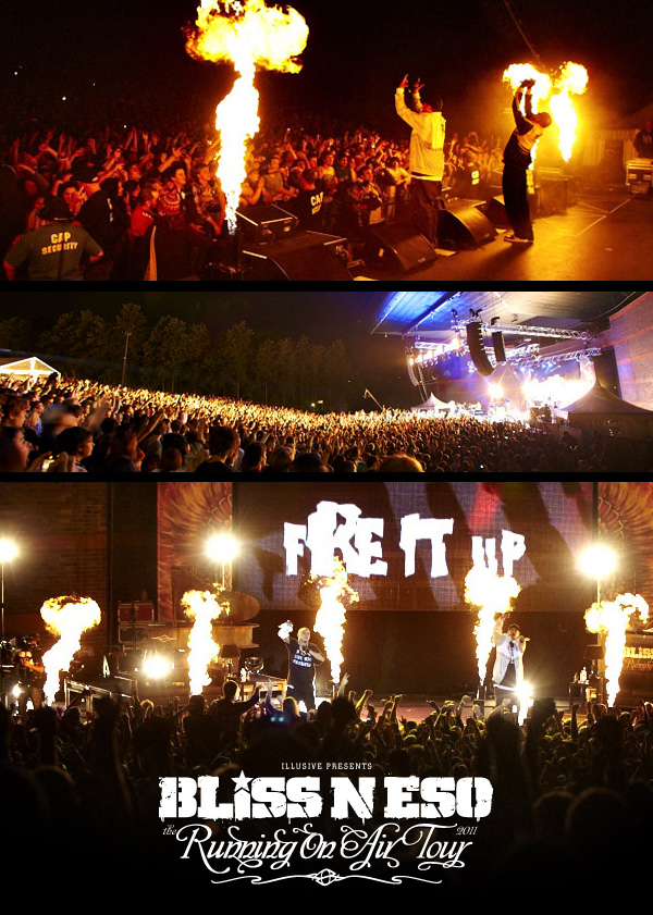 In May & June 2011 Bliss n Eso embarked upon a historic and record-breaking tour around Australia. Performing in front of over 60,000 fans across 14 individual shows, the tour went on to receive critical acclaim and cemented itself as the highest selling local hip-hop tour of all time.