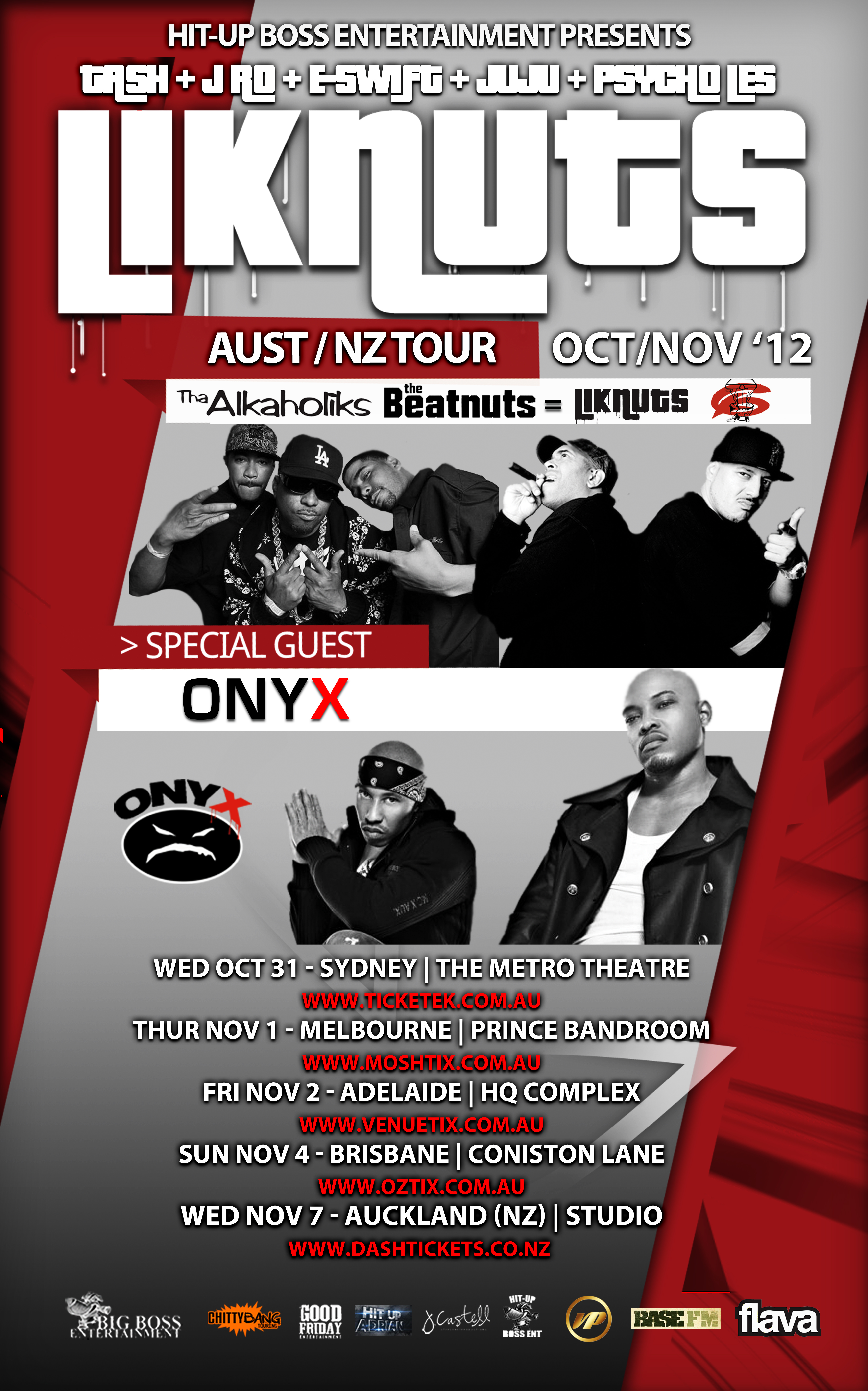 Definately one of the most anticipated releases of 2012 to hip hop fans worldwide, this collaboration is sure to be an instant hip hop classic. If that line up isn’t enough by itself, Onyx (Fredro Starr and Sticky Fingaz) will also be making the journey down under to bring their energetic performance to the night as well.