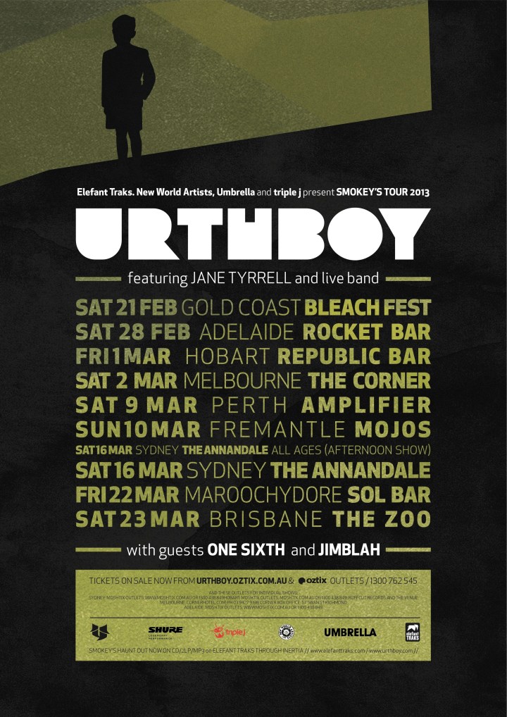 Fresh from releasing one of the most talked about albums of 2012, Urthboy hits the road with a new live band and a j Award nomination. Urthboy’s new album Smokey’s Haunt has received a phenomenal response after debuting at #14 on the ARIA Album Chart. It was triple j Album of the Week, The Australian gave it a 5 star review saying it was “absolutely captivating” and it was announced just this morning as a nominee for the 2012 j award.