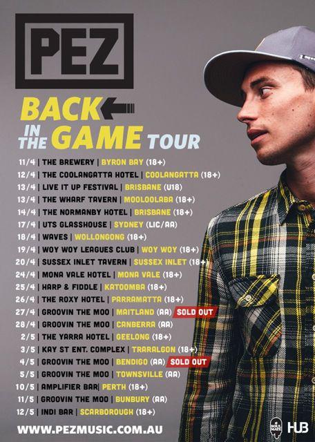 The Back In The Game Tour will roll through 21 dates nation-wide and provides Pez with the chance to unveil tracks from his long awaited sophomore album – including current single The Game.
