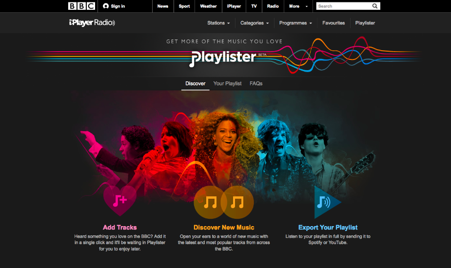 BBC Playlister will let audiences add and save their favourite tracks heard on the BBC to a personal online playlist, which they can then export to one of the BBC’s digital music partners where they can hear the music in full. Music fans will also get hand-picked recommendations from their favourite DJs and presenters.