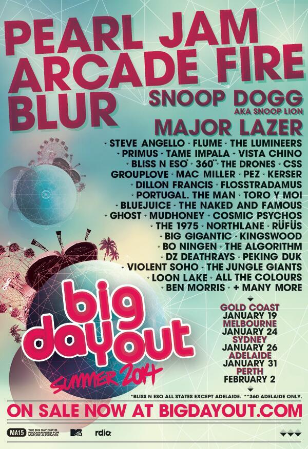 Pearl Jam * Arcade Fire * Blur * Snoop Dogg aka Snoop Lion * Major Lazer