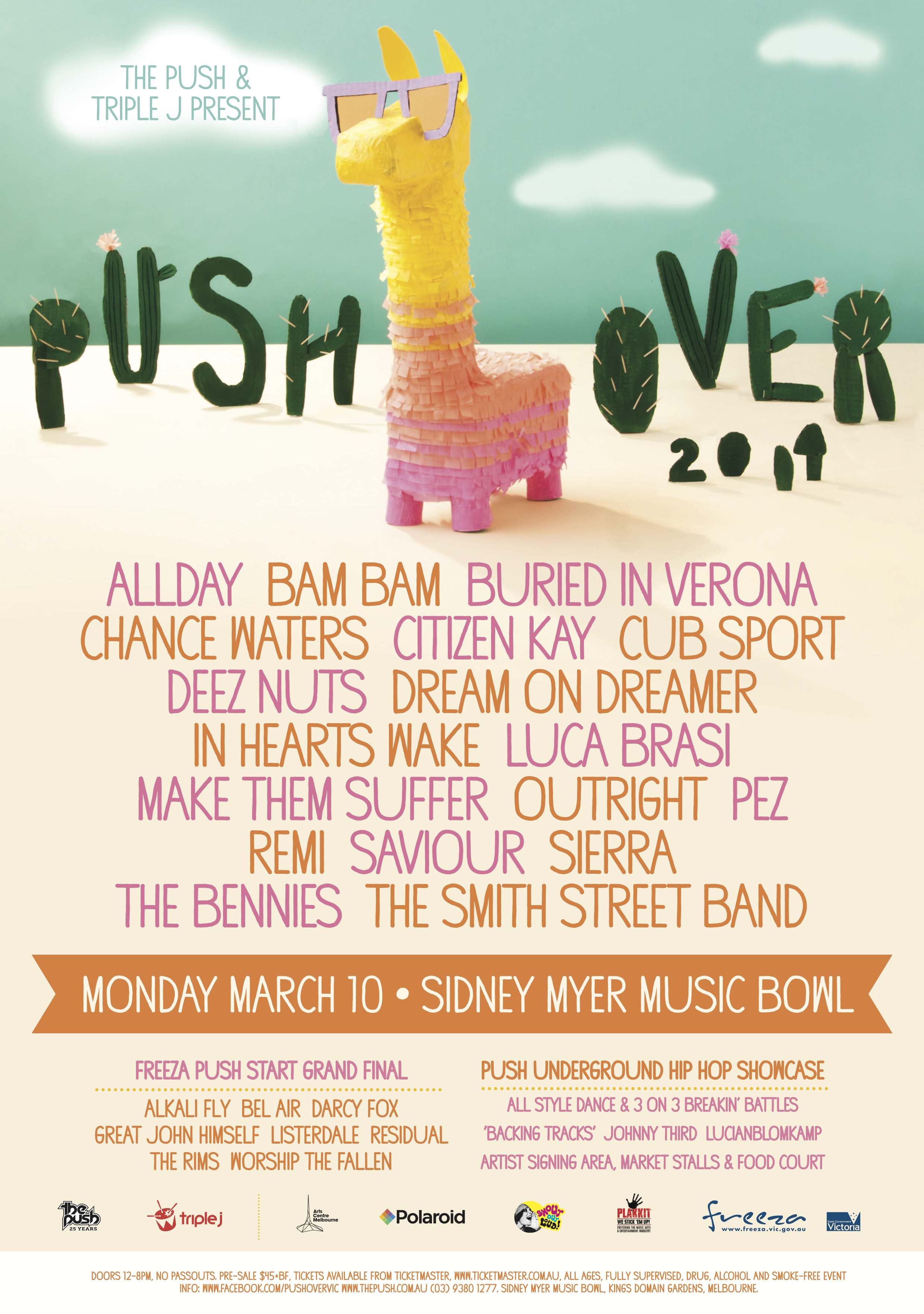 Presented by The Push, triple j & supported by FReeZA, Victorian Government, Arts Centre Melbourne, Polaroid, Plakkit, & Shout Out Loud