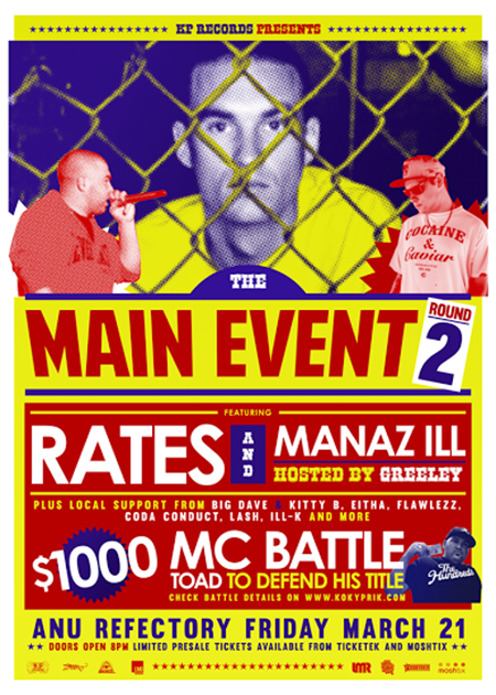 Manaz Ill – Established Adelaide battle MC with recent success taking out $10,000 at “The Language Of War” battle comp as well as the “Best Battle MC” award. As well as staying active in the battle scene Manaz has also been touring his new album What It Look Like released by himself and producer Mdusu as MDMA. Main Event Round 2 will be the Canberra launch show for the new album.