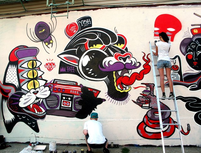 WHAT: From May 8 2014, the large and bland infrastructure of 1-5 South Terrace (Market Street) Fremantle, Western Australia will be transformed by Australian street artists Alex Lehours, Yok and Sheryo to create a truly democratic mural. Converse invites fans from around the world to interact with the artists and influence their creations by making suggestions of what to paint – forming a series of collaborations that will be anything but boring.