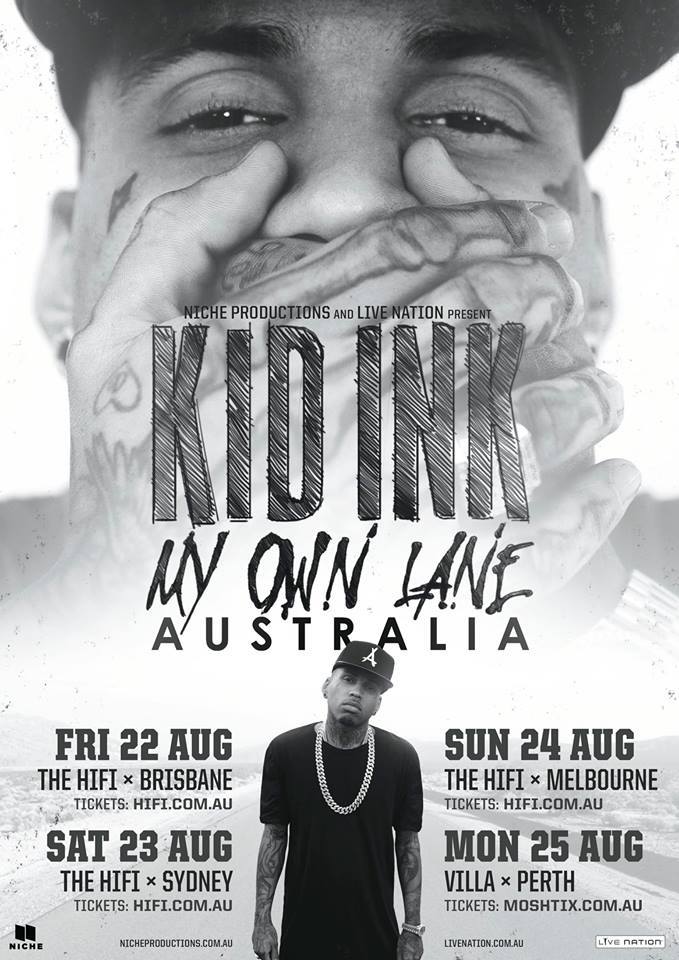Cruising past all boundaries, Kid Ink seamlessly slips from an irresistible hook into an impeccable verse, effortlessly bobbing and weaving between the club and the streets. Proving he is the master of blending stylistic choices, Kid Ink creates something truly unique on his full-length debut, My Own Lane inviting audiences from various genres to his world. There’s no stopping him.