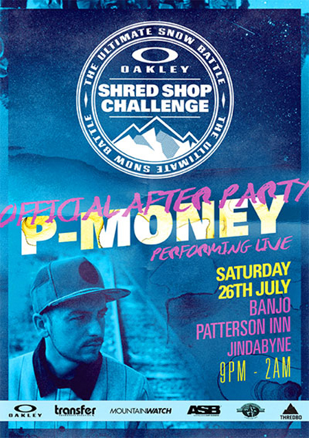 The event will culminate in the Official Shred Shop Challenge After-Party at the Banjo Patterson Inn, Jindabyne. Guests will be treated to a special live performance by legendary DJ/Producer P-Money from New Zealand. The after-party is open to the public with no cover charge. Drinks will be flowing from 9pm.