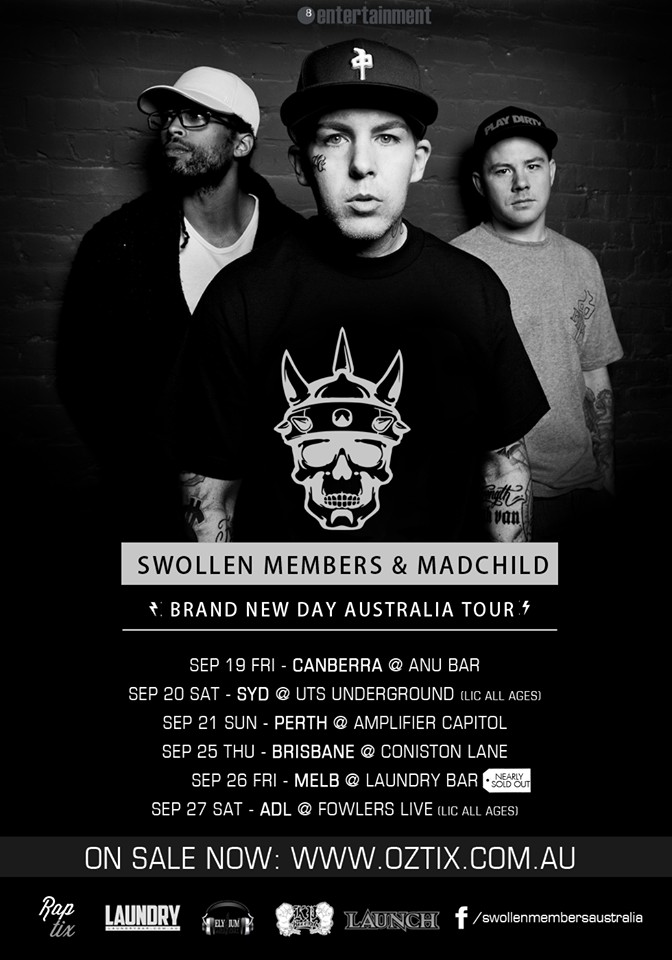 He also competed in the prestigious KOTD rap battle league which saw him take a memorable win. Enthusiasm among Australian followers is reaching feverish levels as Madchild and Swollen Members now return to Australia for the first time in 10 years for the tour the fans demanded.