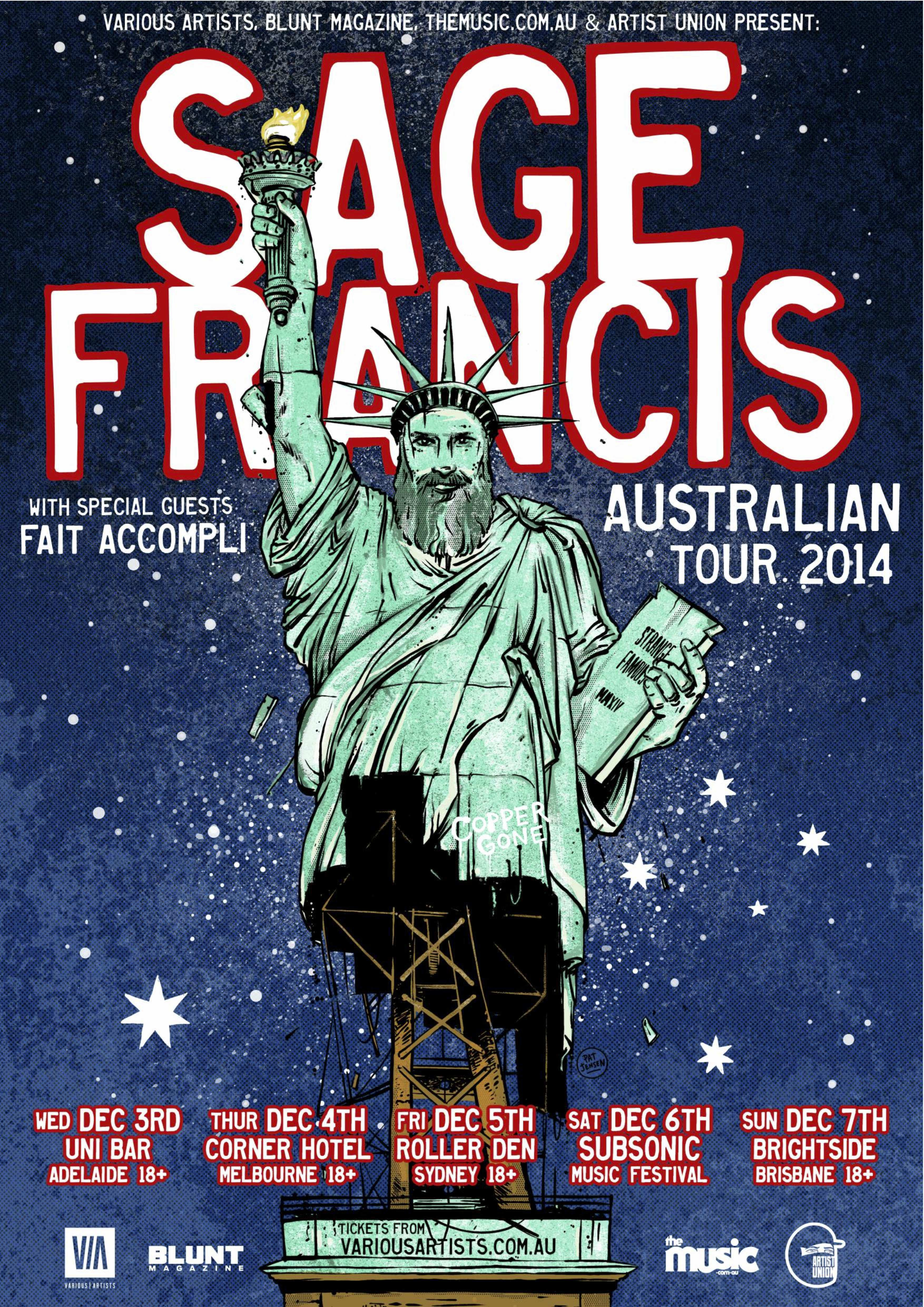 Hip Hop and Punk are two concepts that are no stranger to Australian music lovers, from the 80’s and beyond. Sage was even signed to Epitaph Records when he first started out, bringing together the tribes over the years and in his own way making a massive contribution to the melting pot of cross over hip hop music we see today. So with these shows we hope to bring together audiences from all styles of music to help us re-configure and reimagine a new and exciting landscape for Australian music where hip hop and punk music can co-exist like it has in the past.