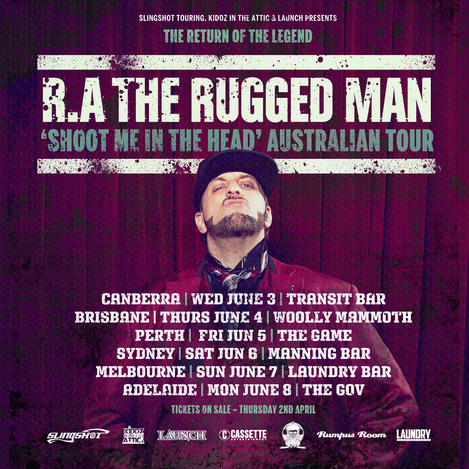 R.A The Rugged Man is a New York native and will be touring across Australia with his “Shoot Me In the Head” tour.