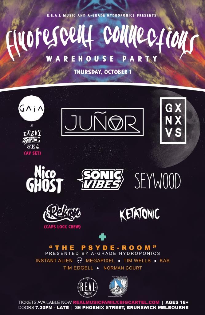 To celebrate the success of his freshman EP Fluorescent Connections debuting Top 10 on the iTunes Hip-Hop Charts; psychedelic Melbourne rapper Junor has put together a huge Warehouse Party line-up presented by his R.E.A.L Music creative collective and greenery experts A-Grade Hydroponics.