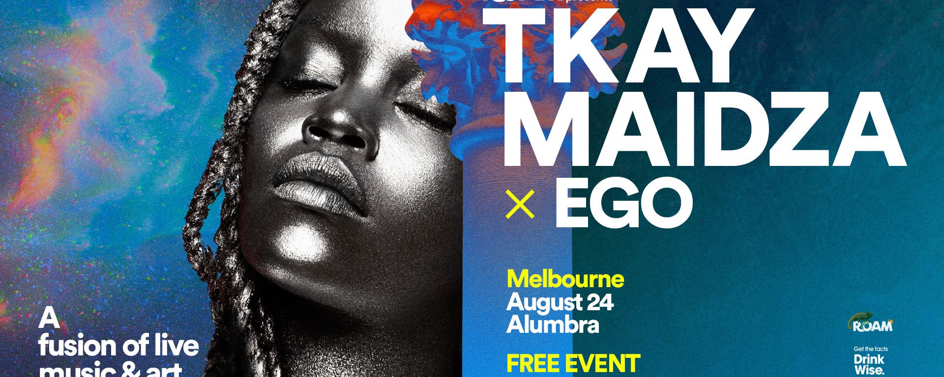 Fusing beer with spirits & fruit, ROAM pairs harmonious flavours together and is excited to combine two powerhouses of creativity; Australia’s queen of electronic hip-hop, Tkay Maidza and leading visual artist EGO, to collaborate for this fusion of live music and art.