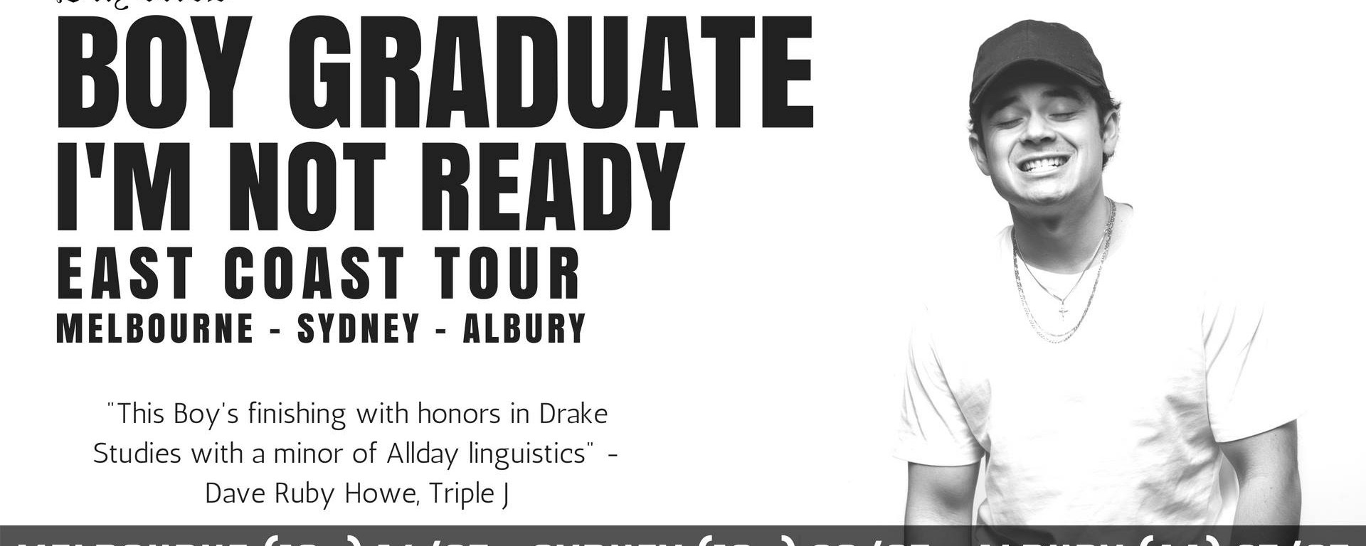 Melbourne artist Boy Graduate is celebrating the release of his popular single ‘I’m Not Ready’ featuring Chicago Rapper Brian Fresco with a headline tour across the east coast of Australia this July. Featuring performances in Melbourne, Sydney and his hometown of Albury/Wodonga.