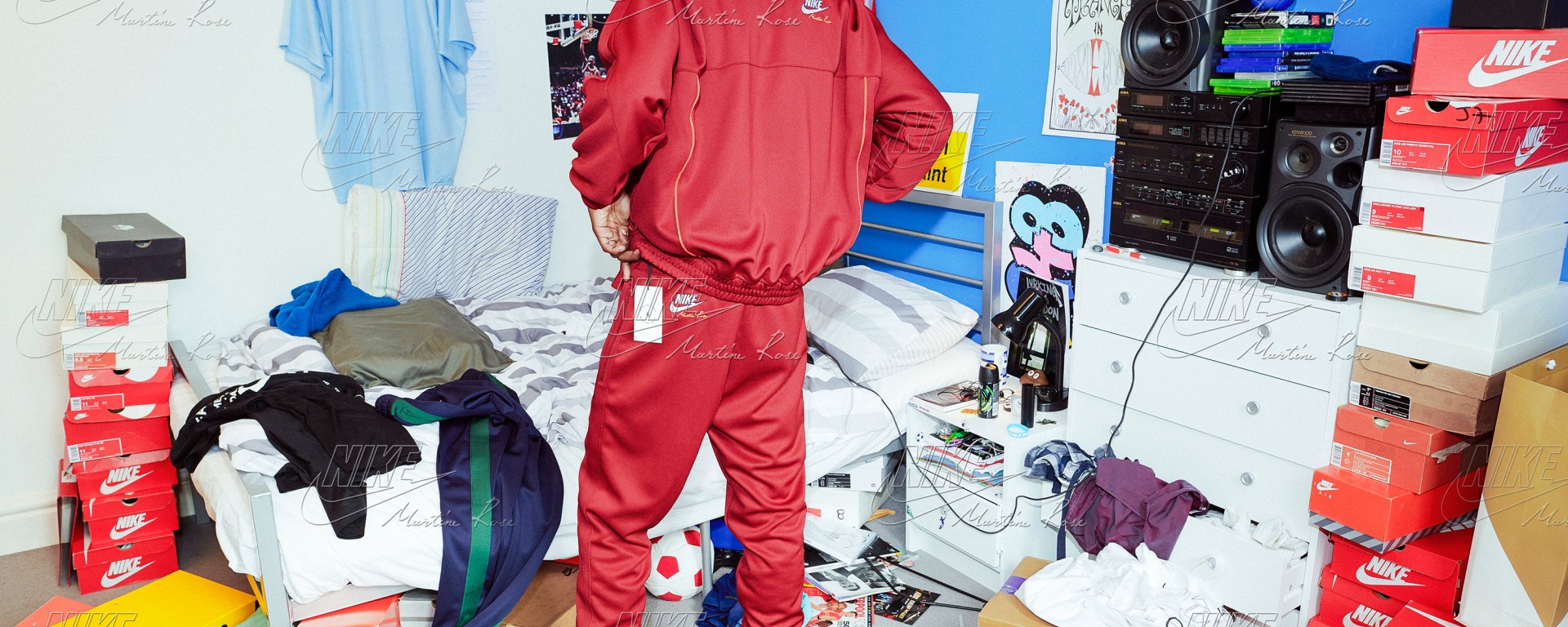Nike x Martine Rose, a capsule featuring tracksuits, football jerseys and a completely re-articulated Nike Air Monarch is inspired by her interest in how people interact with clothes.