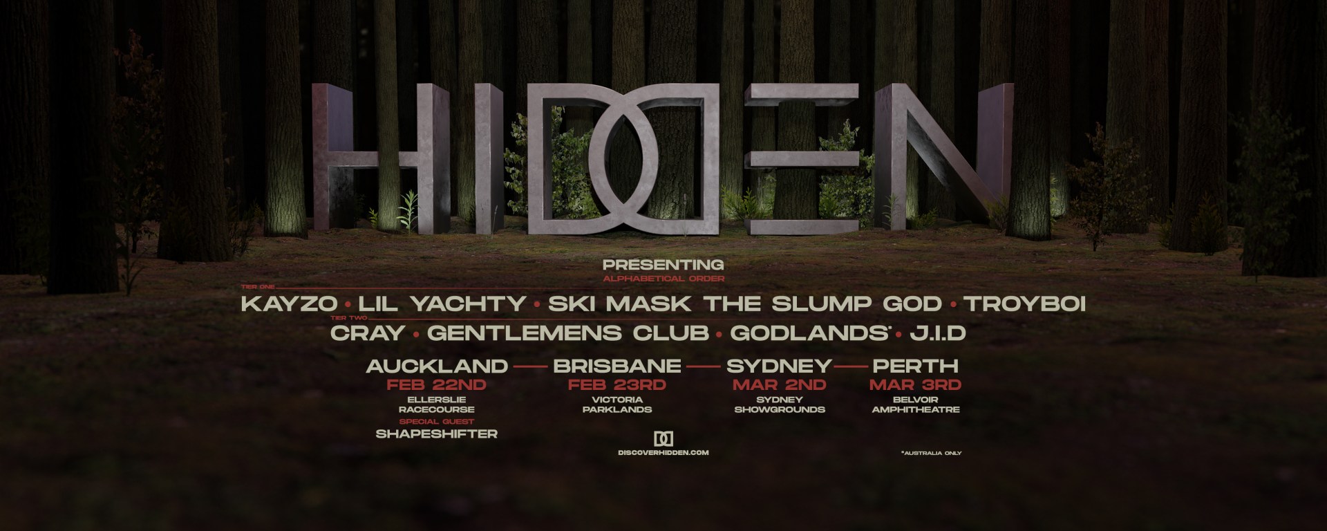 Perth’s single stage concert style event, Hidden has today announced its evolution to a national event with dates in Sydney, Brisbane, Auckland and their forever home Perth, also revealing their mega line-up, led by international superstars Kayzo & Lil Yachty.